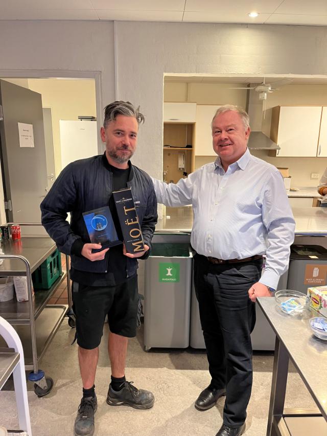 Per Bjerring, COO / Chief Operations Officer (pictured right) of Ergonomic Solutions presents a STARS award to Per Pedersen, our Paint Manager (pictured left)